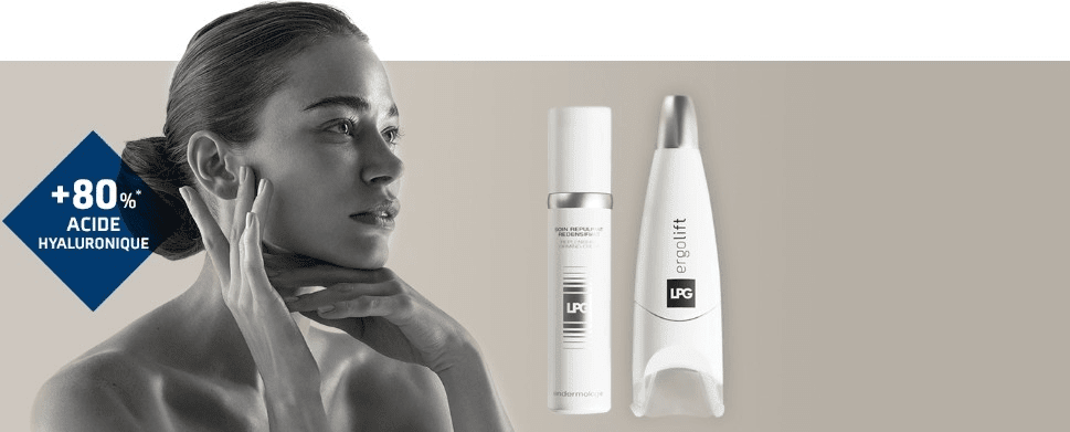 En combinant l'aspiration de la peau et le battement dynamique des clapets motorisés, la tête de traitement brevetée LPG ®️ réalisé une véritable gymnastique cutanée : les fibroblastes ainsi stimulés produisent à nouveau collagène, élastine et acide hyaluronique endogènes.