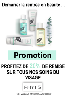 Venez vite profiter de nos -20% tout le mois de septembre ! Peau déshydratée sèche grasse ou même mature ? Prenez vite votre rendez vous avec notre esthéticienne. Nos produits sont certifiés bio afin de respecter votre peau et l'environnement